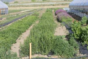 Occasionally we try to provide CSA members with a choice of herbs in your weekly share. I thought you might like to see where they are grown. We grow and sell a lot of herbs, mostly for restaurants. We also sell small herb packets at the farmer’s market and sometimes give herbs to the CSA. Tending and harvesting the herbs is a big part of my job.