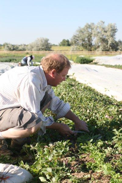 Clay, Chayo, Martha and Madi harvesting arugula.