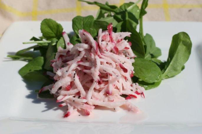 Some CSA boons and battles are one in the same. This week, for example, you may choose to take home scarlet turnips in your share. Maybe you’ve been eating scarlet turnips for years, or maybe you’ve never even heard of them. Trying new things can be daunting at first, but I hope you’ll find that the rewards outweigh the challenges. You might just learn that your kids LOVE curly green kale chips, or that Mo’s turnip slaw is your new favorite dish to bring to summer potlucks.