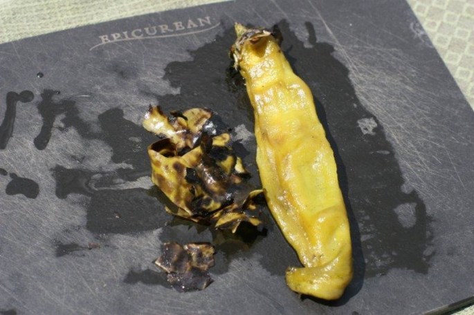 You will want to remove the charred skin because it tastes like cellophane.