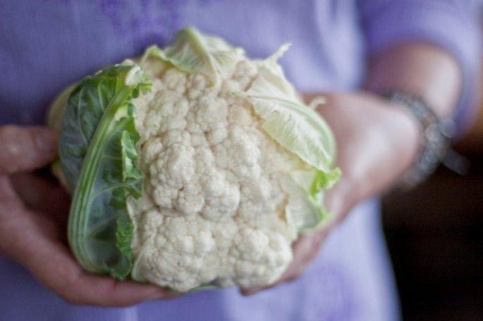And this is the eggplant sauce served along with cauliflower and beans you are getting in your share. I blanched the vegetable for about a minute and served the eggplant sauce on the side.