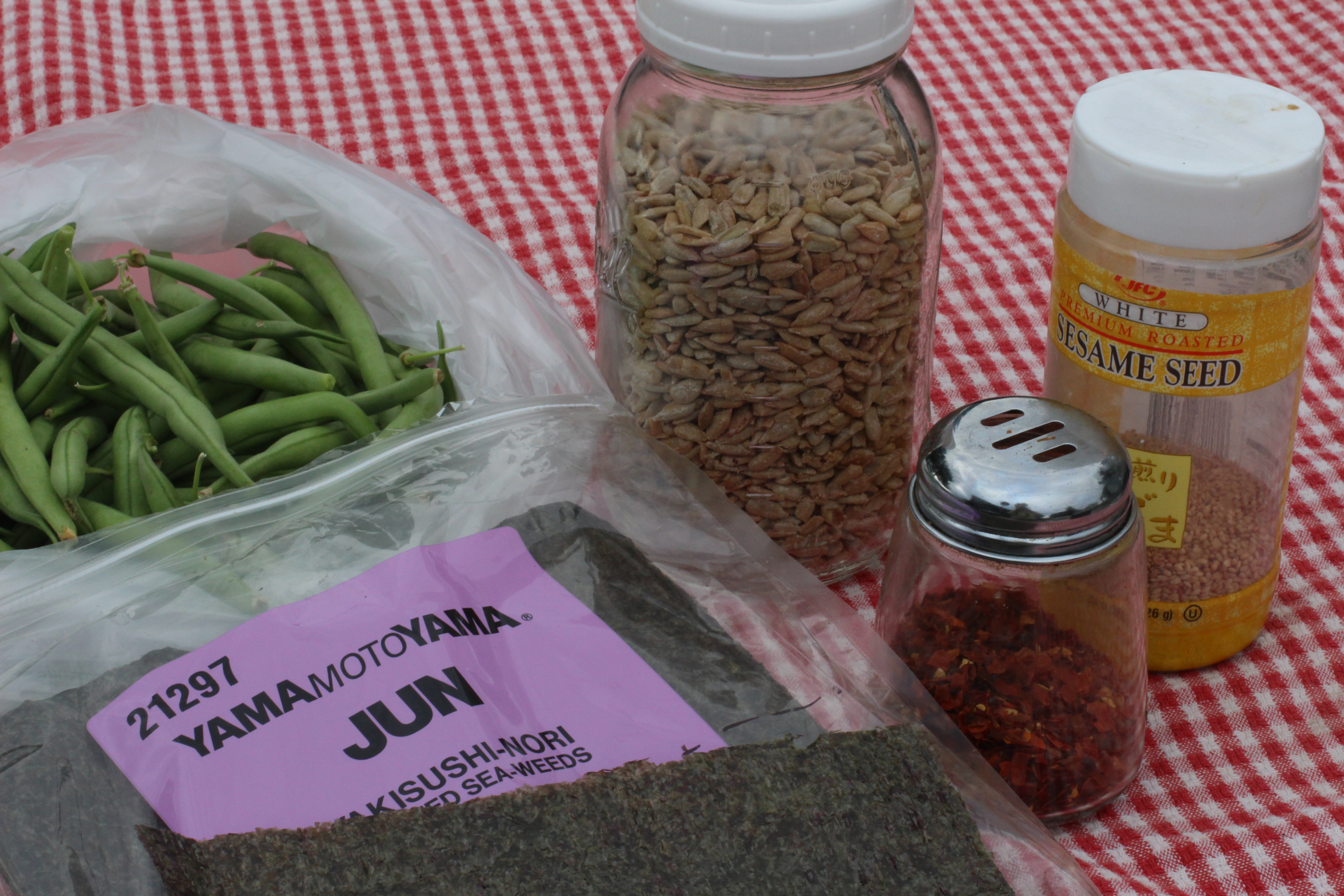 Charred Beans with Nori and Sesame Seed Dipping ‘Sand’.