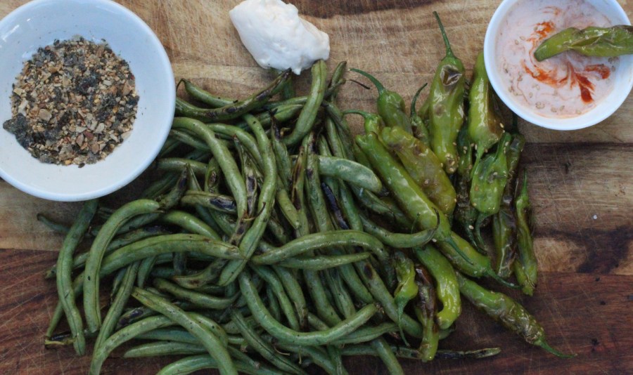 Charred Beans with Nori and Sesame Seed Dipping ‘Sand’.