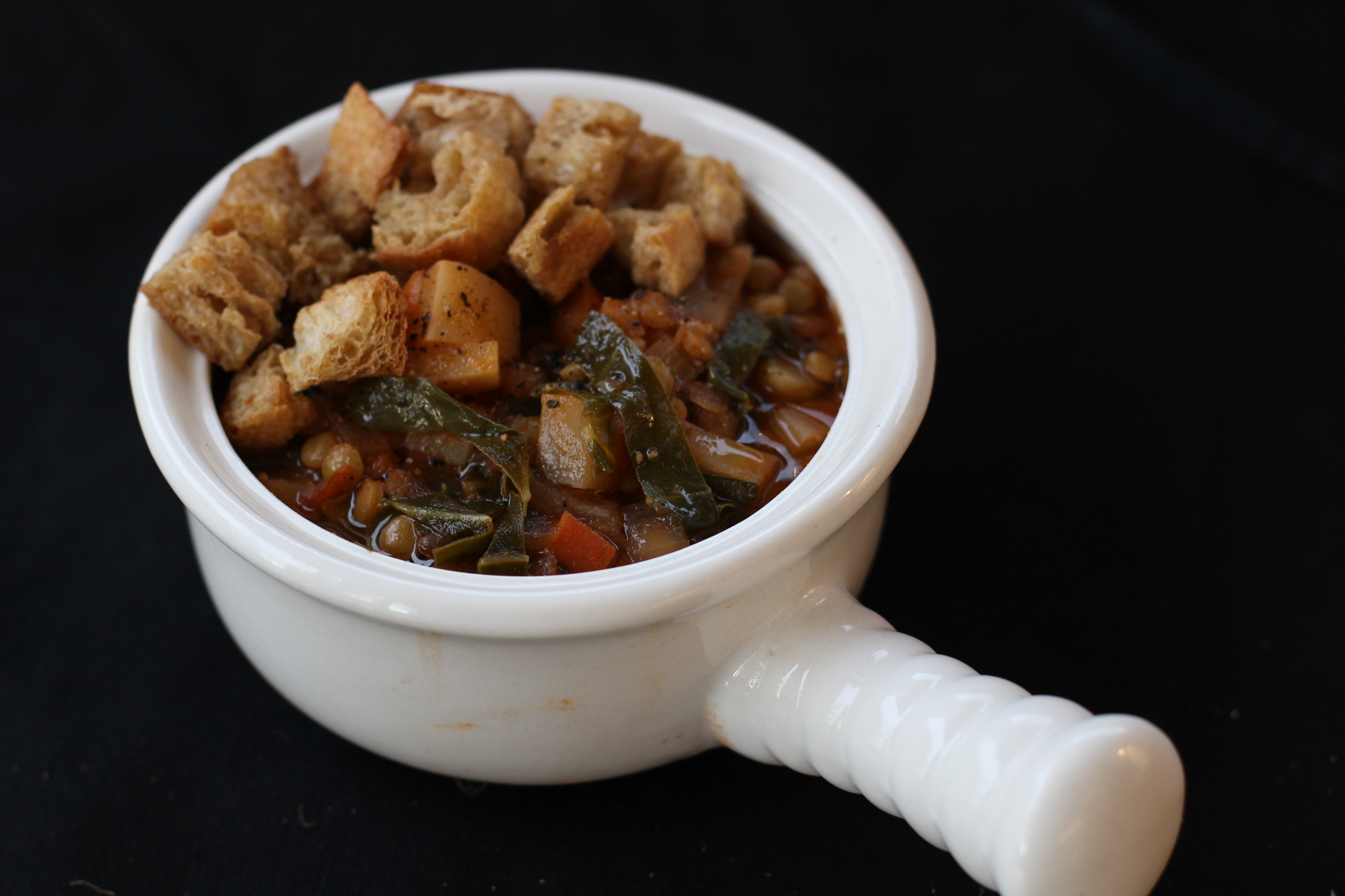 Simmer that for a total of about an hour. About 1/2 way through cooking add about 2 tablespoons of vinegar and your greens and finish cooking until all the vegetables are cooked through. It’s fine to cook it longer. This photo is when I added the greens it needs to cook at least 1/2 hour longer.