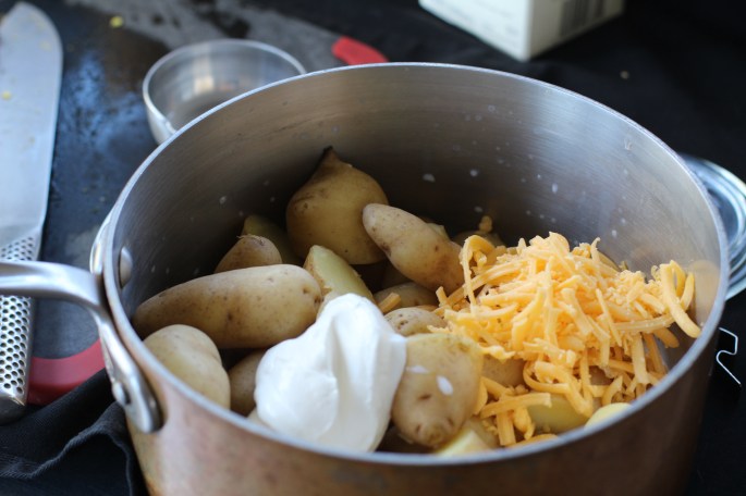 This is after they are fork tender and before mashing, you can’t see the milk in the pan, but it’s there.