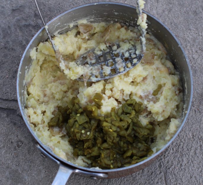 We had a ton of peppers this summer didn’t we? I hope you stashed a few of the roasted chilies away in the freezer to enjoy this winter. You can use any of the roasted peppers we gave you in mashed potatoes. I used some mild Anaheim. Poblano are great in mashed potatoes if that is what you have.