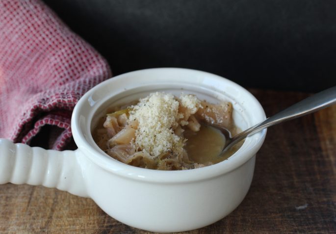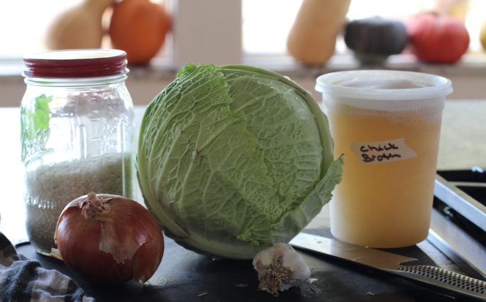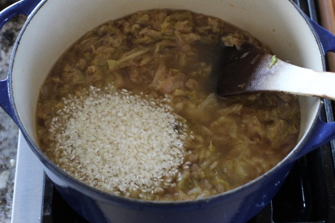 This soup is no exception. It cooks for at least 1 1/2 to 2 hours and it becomes almost like risotto-but it’s soup. The cabbage collapses and is sort of silky sweet.