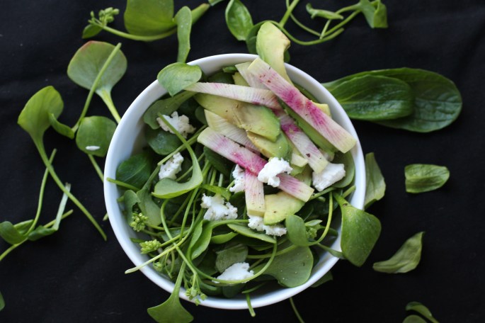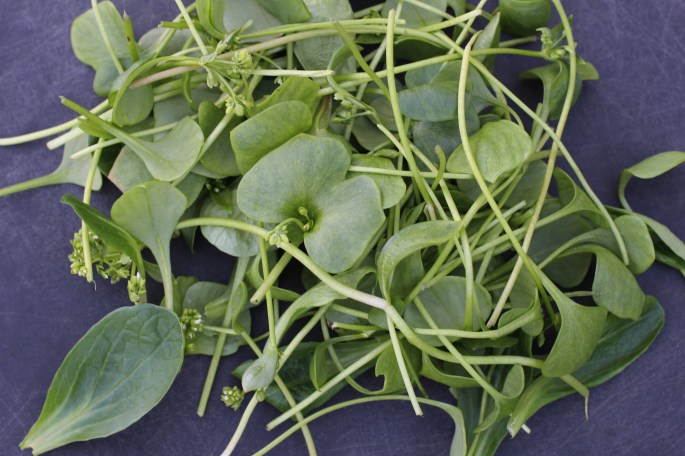 I have also made some really simple salads. I dressed the greens with a little olive oil and wine vinegar and let the mache and claytonia stand out on their own. I wouldn’t use a heavy dressing on these greens.