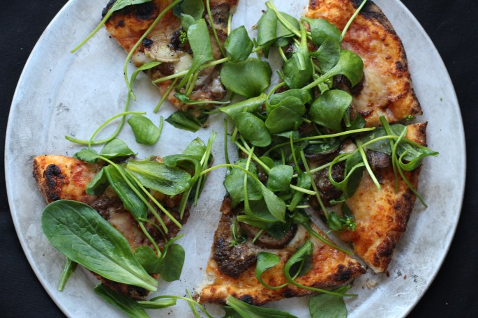 They taste a little sweet and have a texture like a mix between very young lettuce and spinach, you can use them like you would baby lettuce or spinach. They don’t have a strong taste but the delicate freshness and texture is certainly a welcome addition to heavier winter meals. I have been adding them to top just about everything I eat, to add a bit of green vegetable freshness to my meals. We made pizza the other night and usually top it with arugula but I used claytonia and mache, yum.