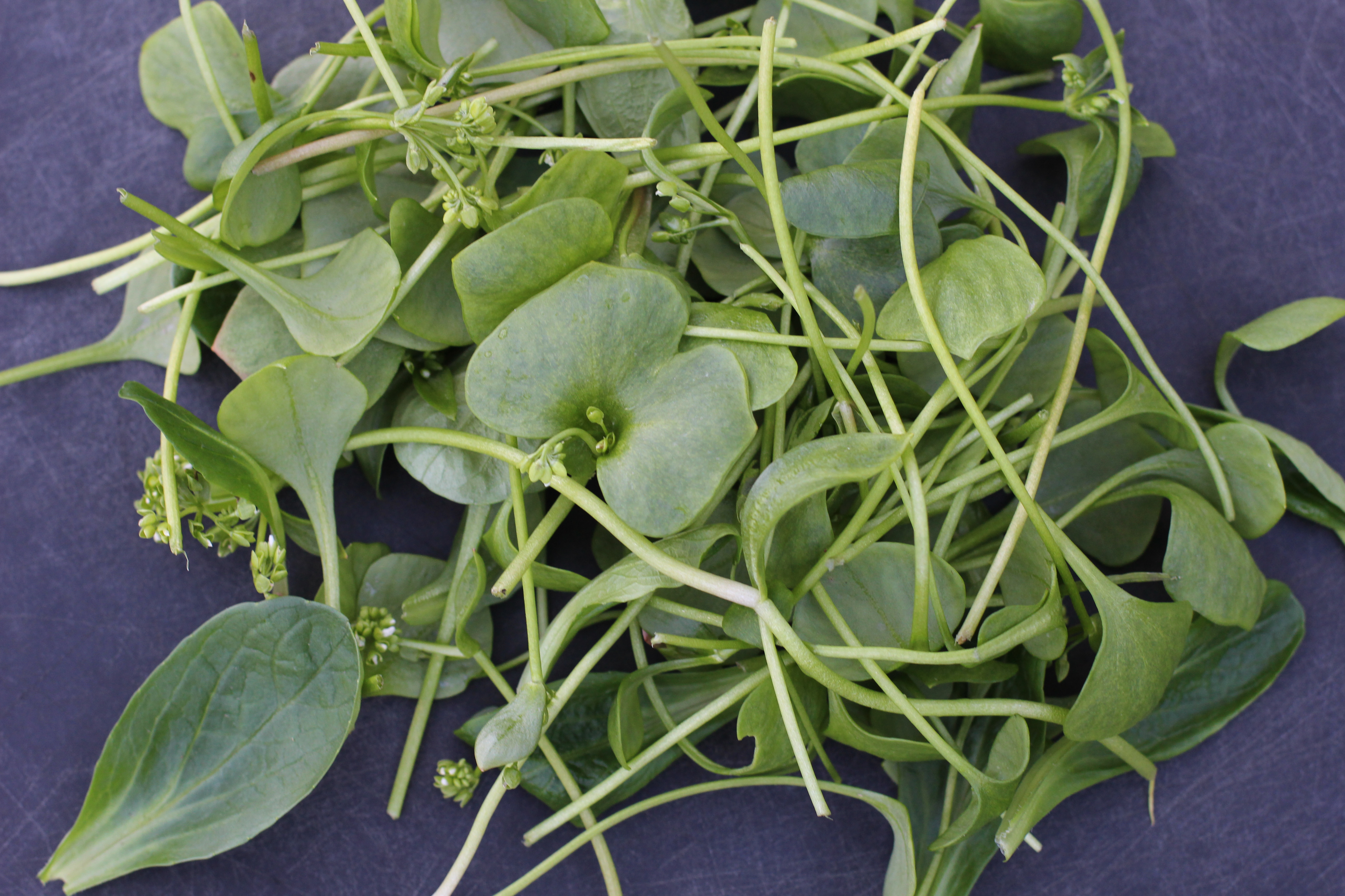 This week you will have a choice of getting a mix of claytonia and mache in your CSA share. You probably have never heard of these greens unless you have grown them yourself. I have never seen them for sale anywhere. They are a winter green that grow, very slowly in cool and cold weather. These are really young, you can see how tender and delicate they are.