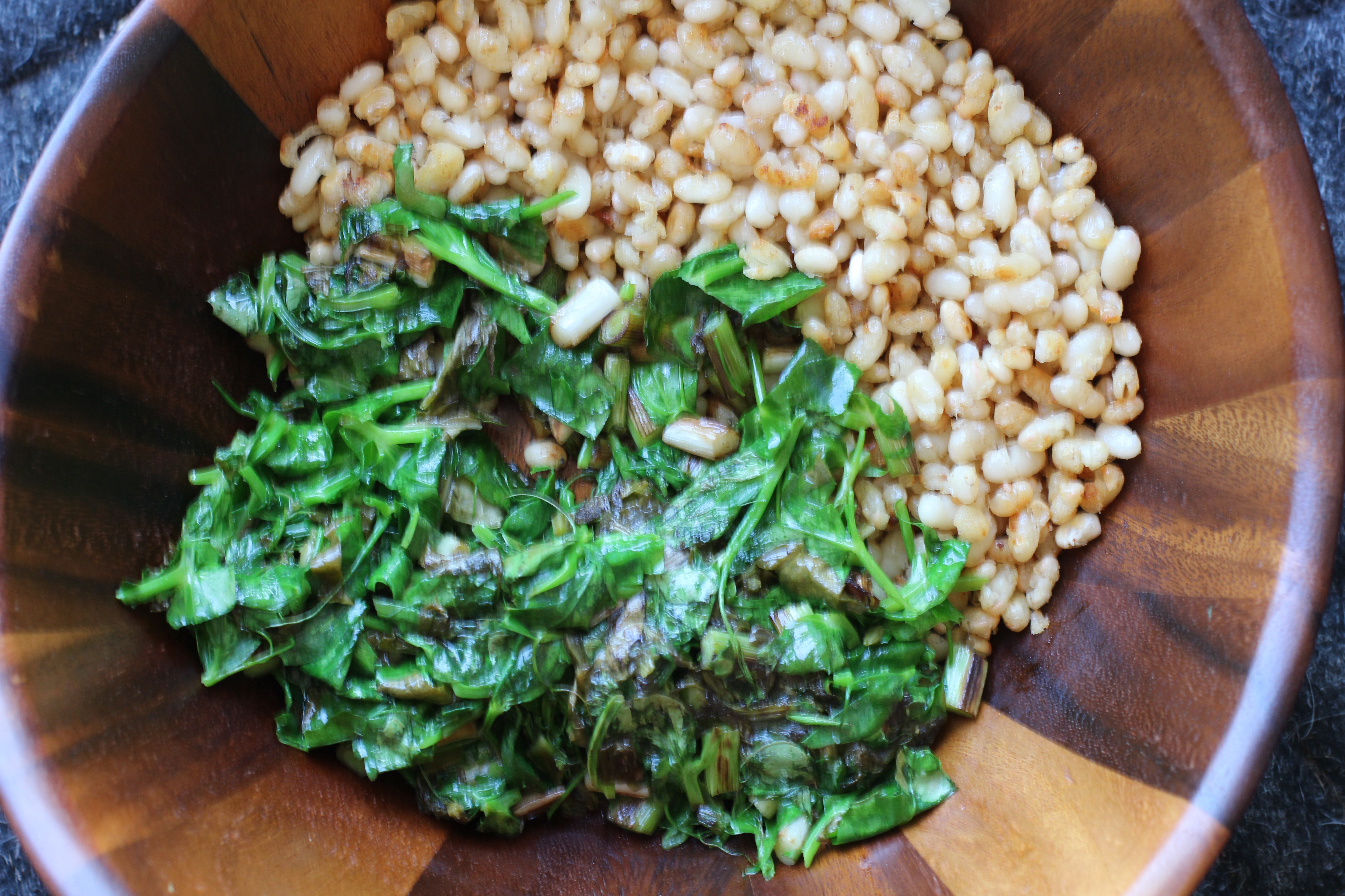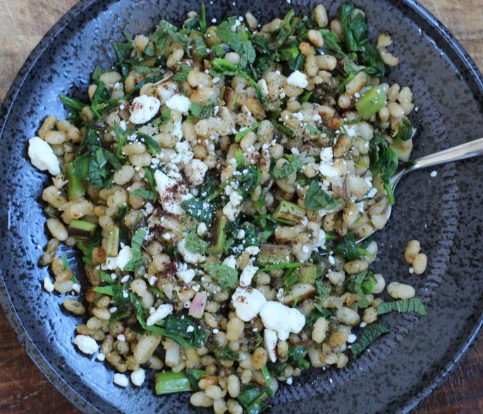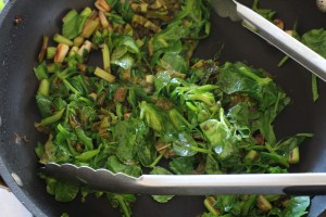 Then sauté some greens and garlic or onions and mix them together and add a squeeze of lemon. You really don’t need a recipe.