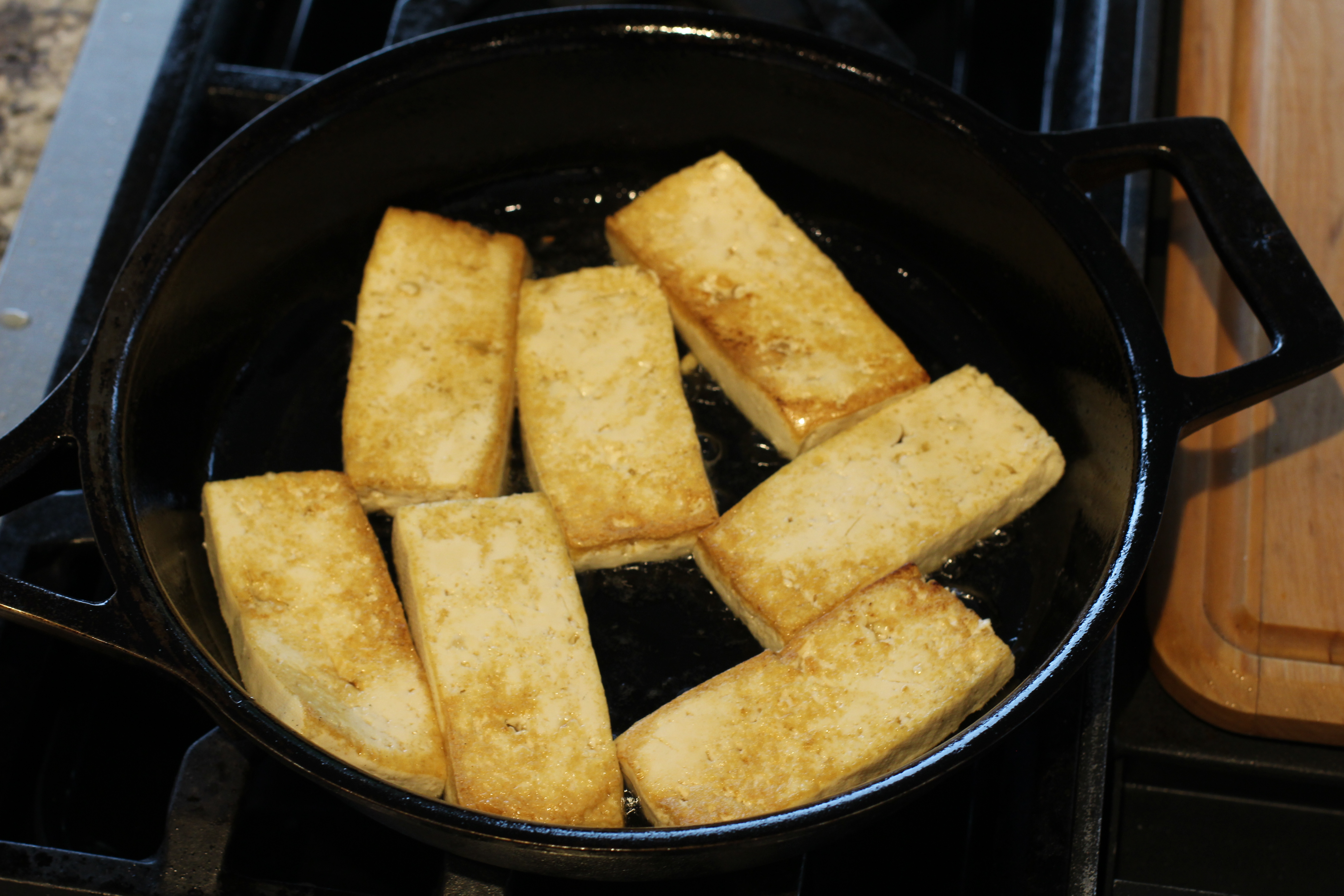 I cooked the tofu in some oil. After it was brown I moved it to a plate.