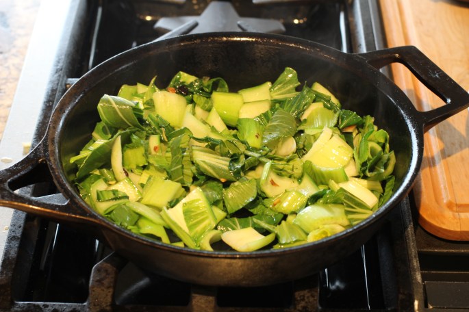 Then I sautéed some garlic and ginger root and cooked the Bok Choy until it was just wilted.