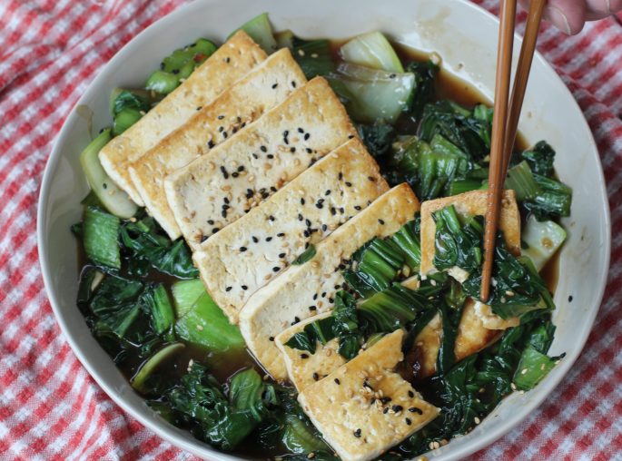 I made a super easy Bok Choy and tofu dish with a super easy sauce.