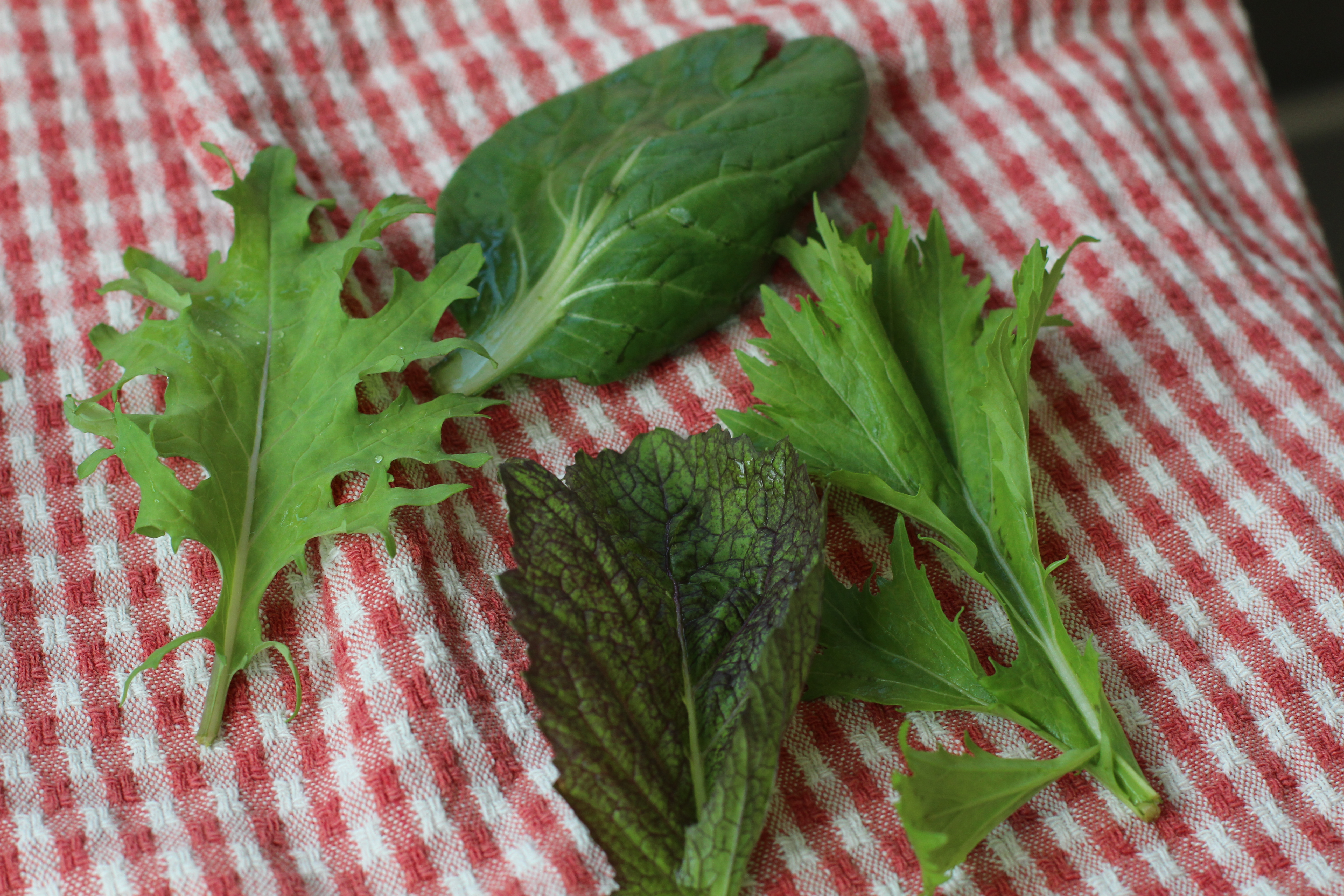 This mix almost always has mizuna, tatsoi, kale and red or green mustard.