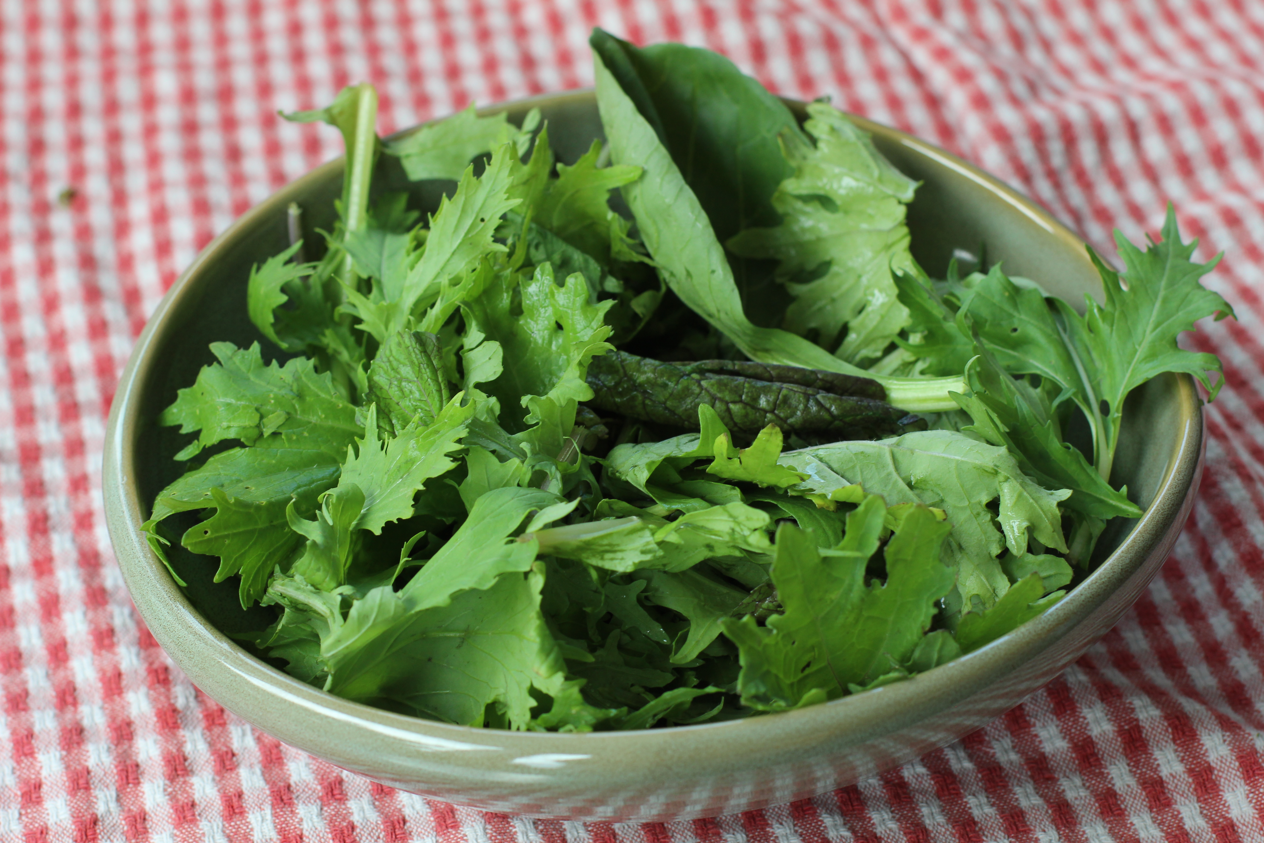 My favorite thing to do with this mix is to put a generous handful of greens in a serving bowl.
