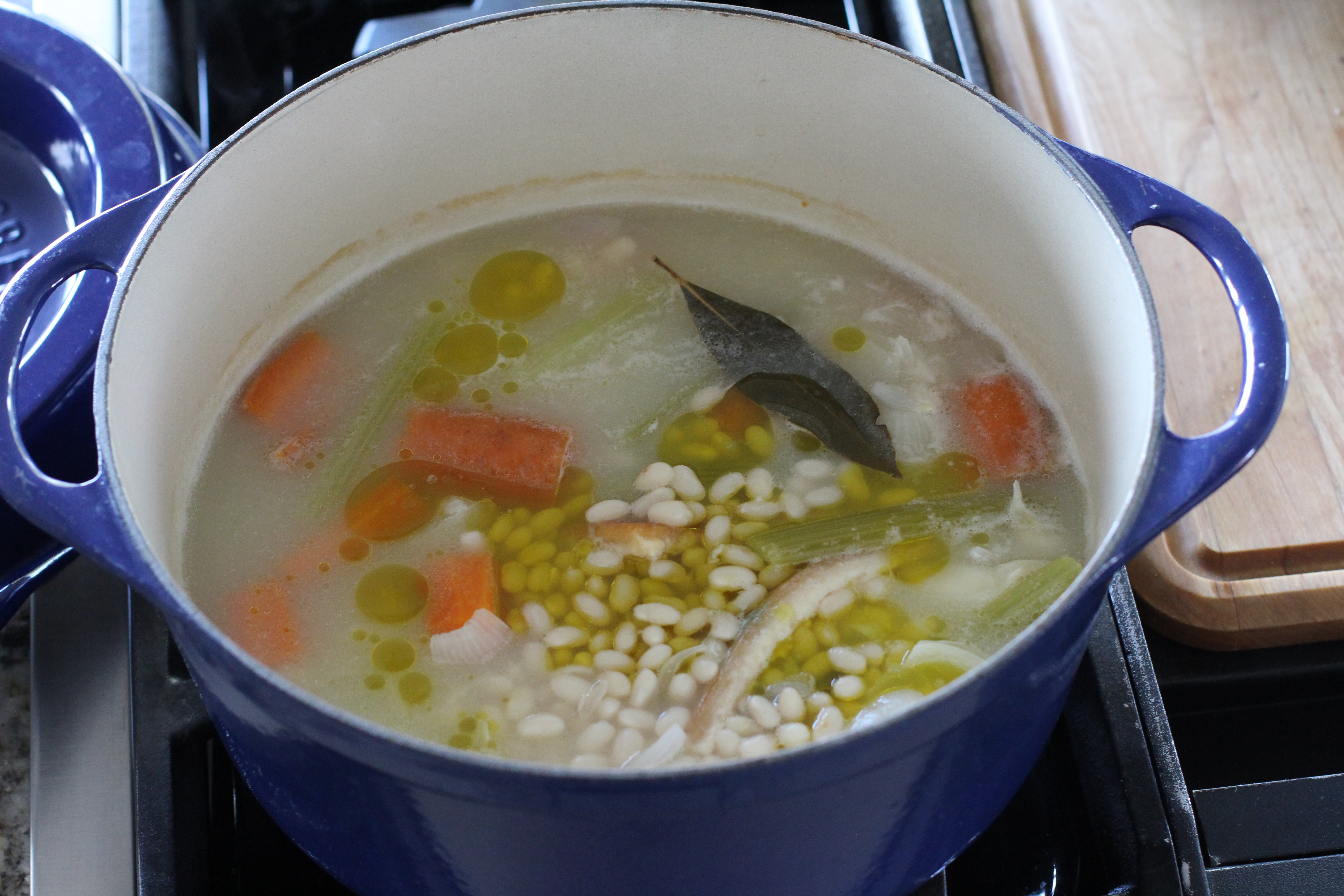 I like to slow simmer beans on the stove when I want a rich broth and intact beans. That is what I am making today.