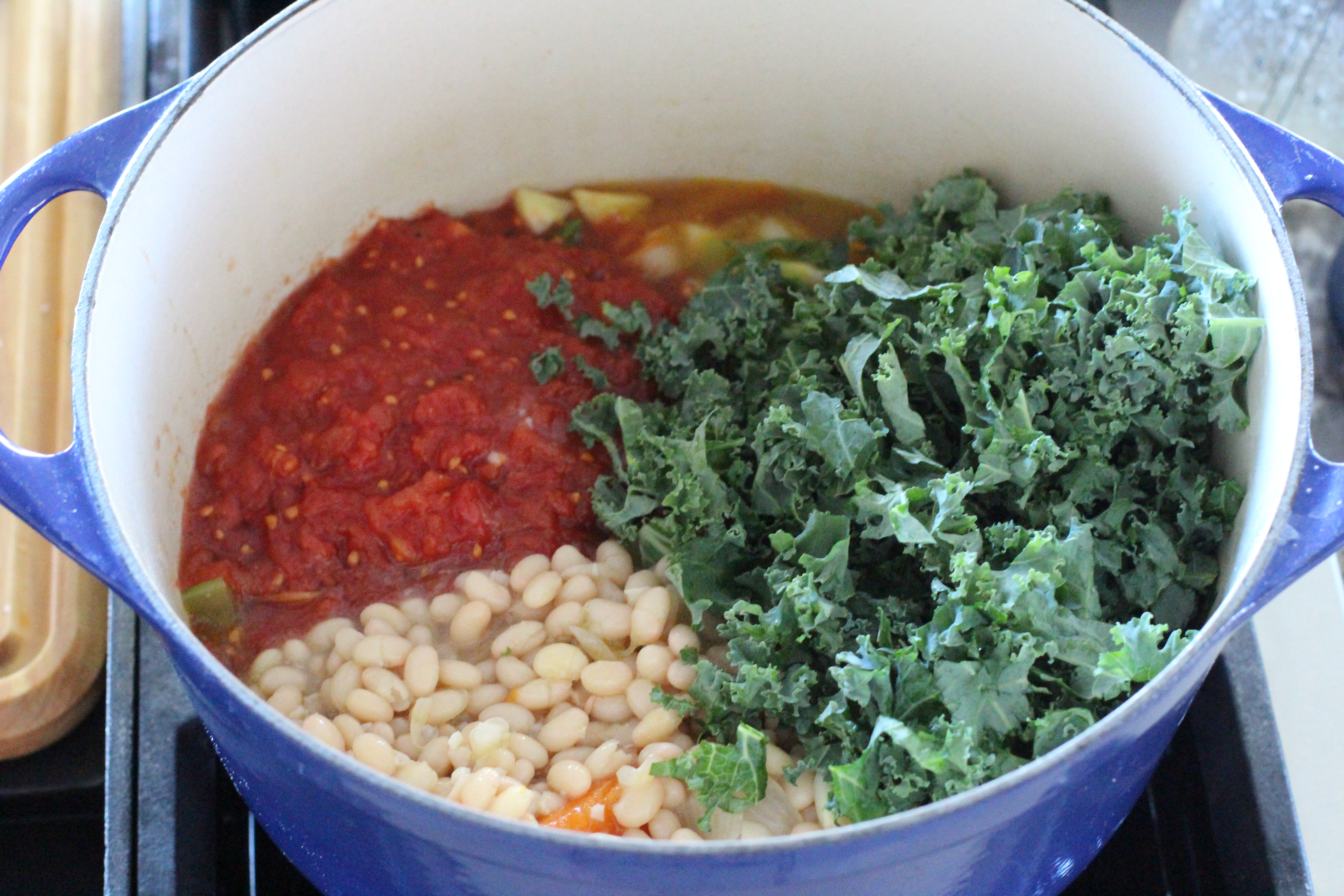- 1 1/2 to 2 cups navy or cannellini beans and broth if homemade. 1 can of white beans, drained and rinsed if you are using canned beans.