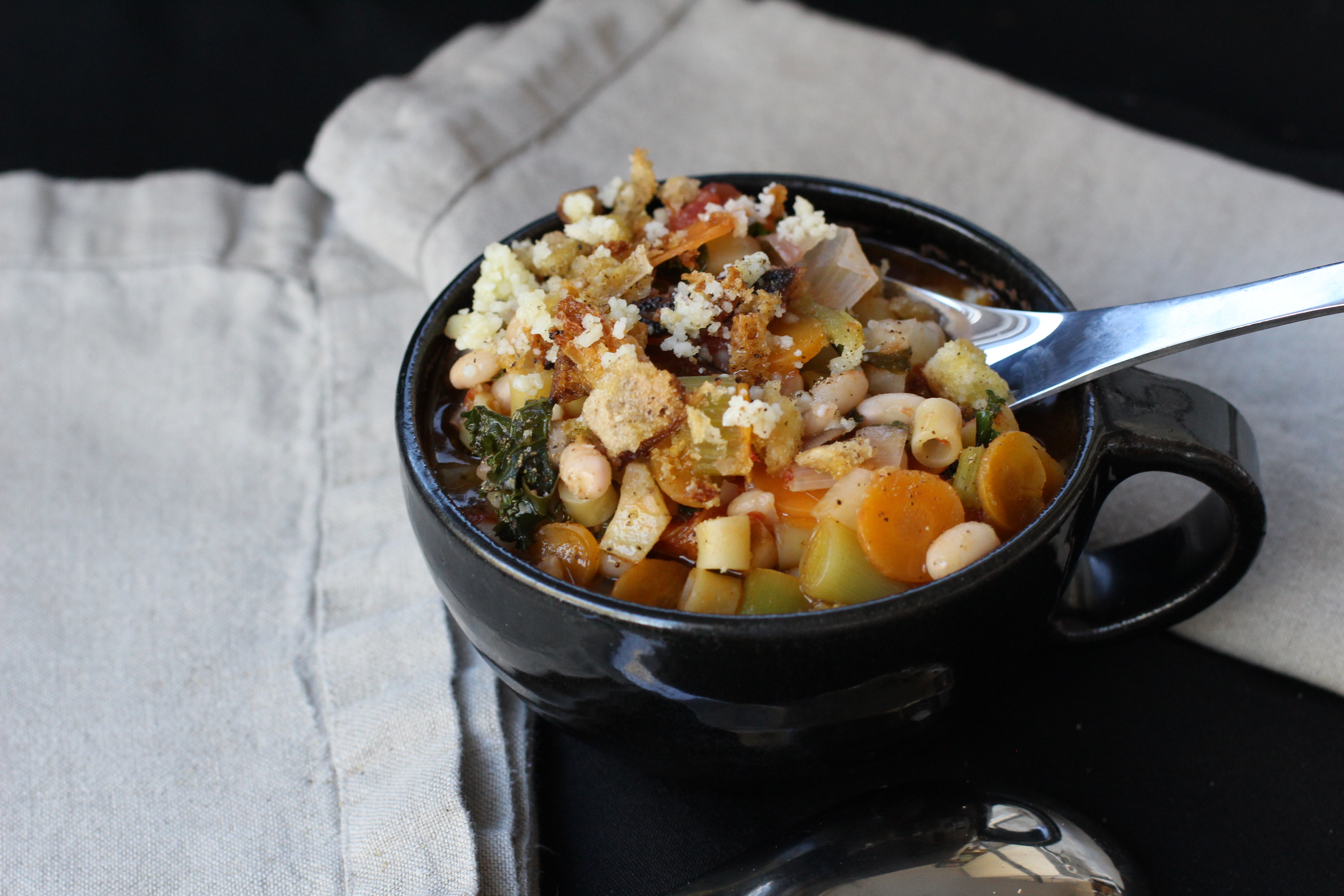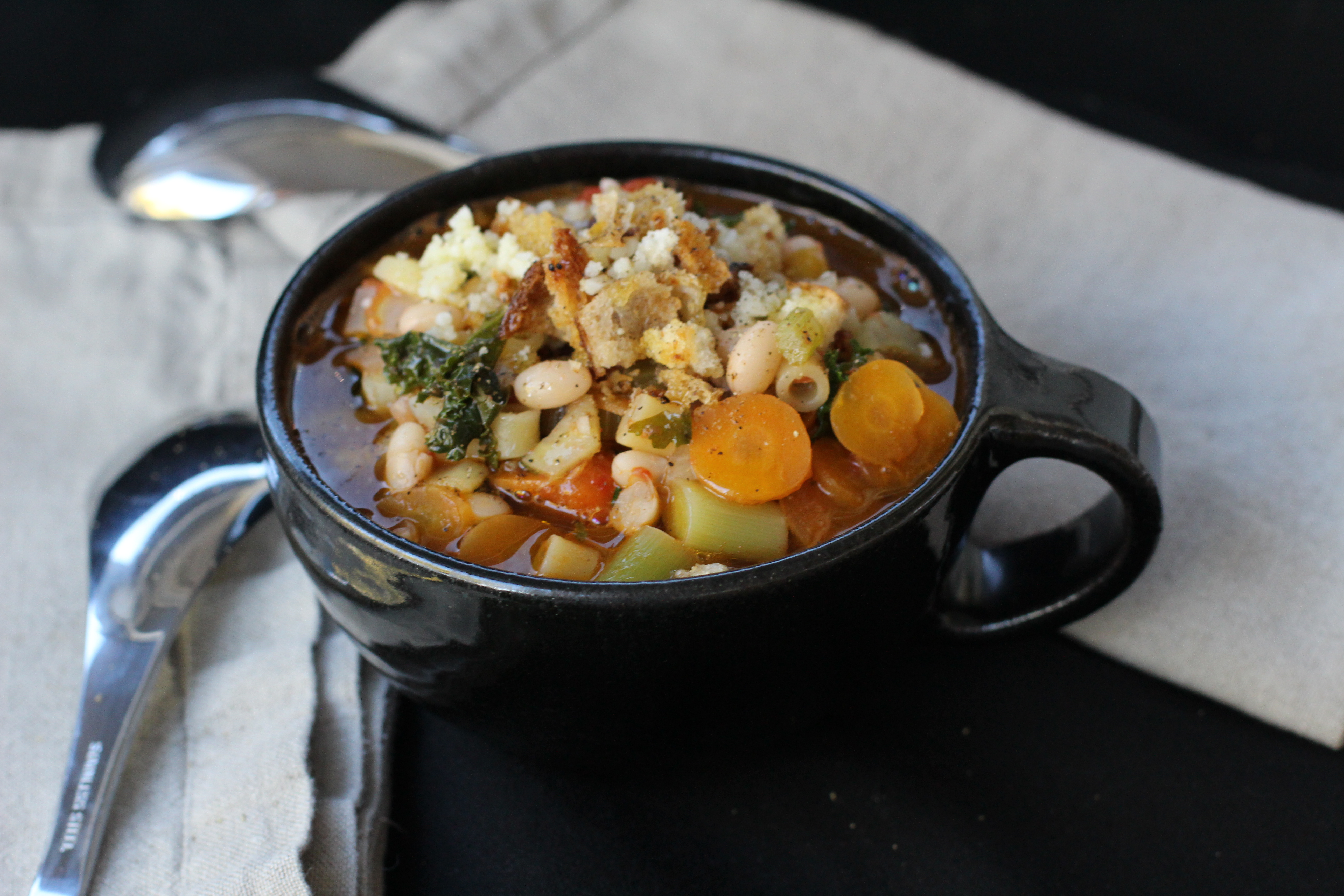 I like to serve this topped with croutons, parmesan cheese and a drizzle of olive oil. Hearty and delicious.
