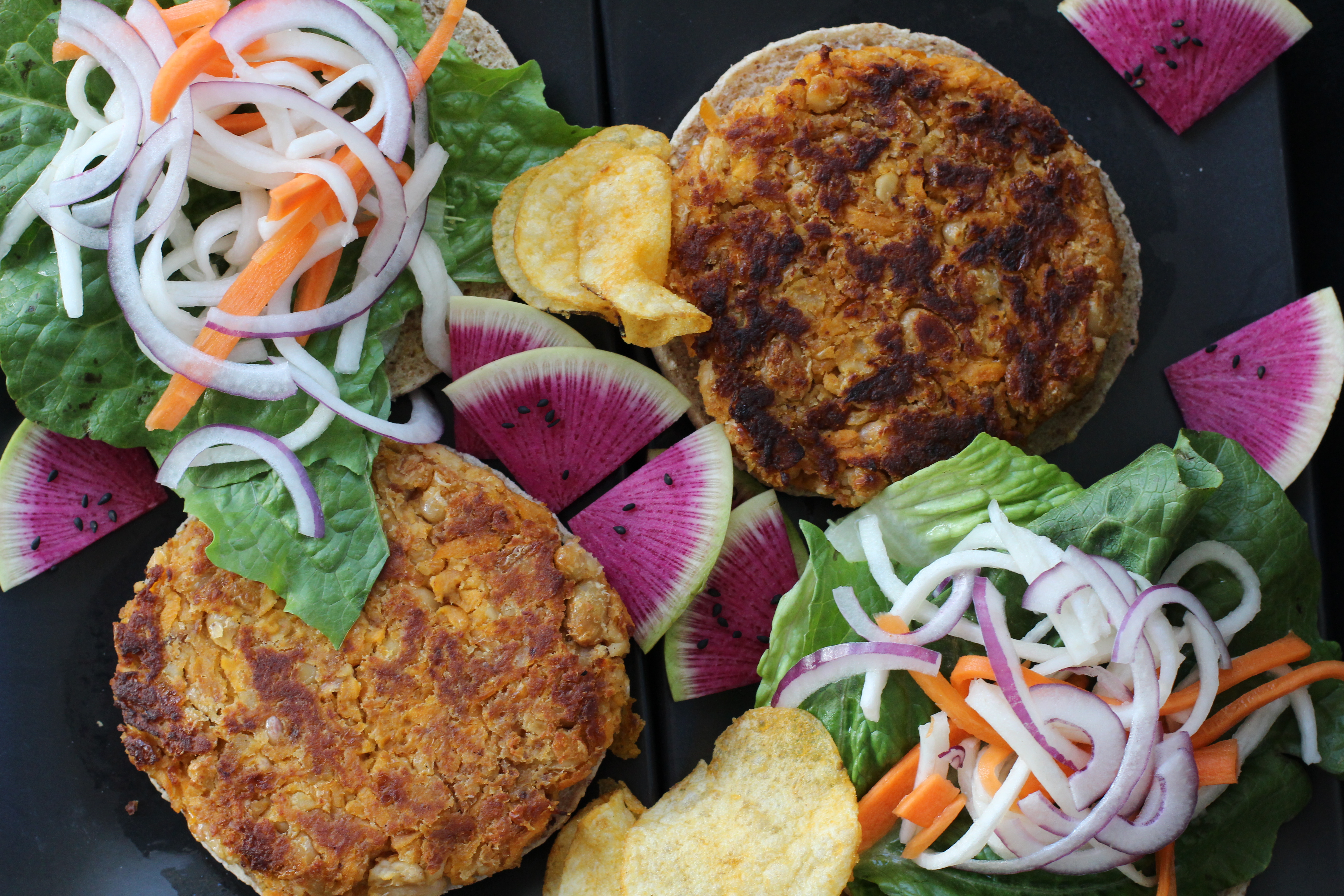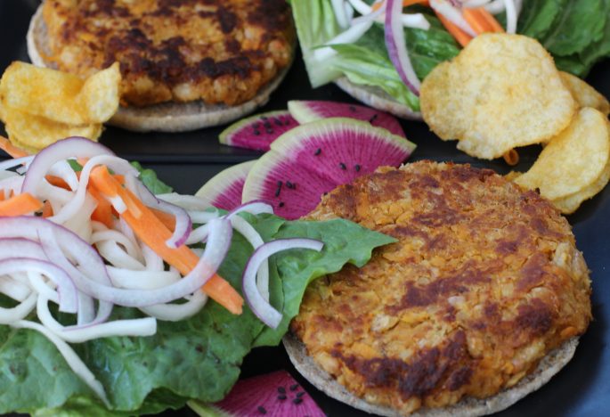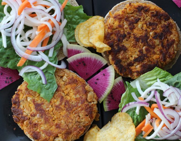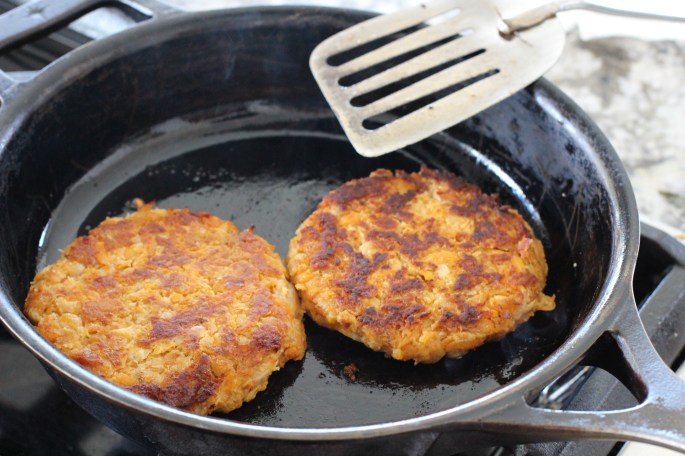 I haven’t posted very many veggie burger recipes here because it seems like most of them have really long list of ingredients. Most recipes too have you use a food processor so it feels like a bit of an ordeal. This one you mash the beans with a fork. It comes together in a jiff and is really delicious.