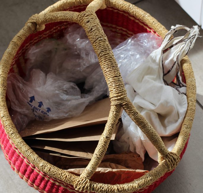 - Have a plan for bringing your CSA haul home. Will you use bags or a basket? Gather what you like to use; plastic, paper or cloth. I have a basket with different bags to put my vegetables in right away when I pick them up. Lettuce and chard and kale don’t wilt if I put them in plastic right away and onions don’t get everything messy if bag them when I pick them up.