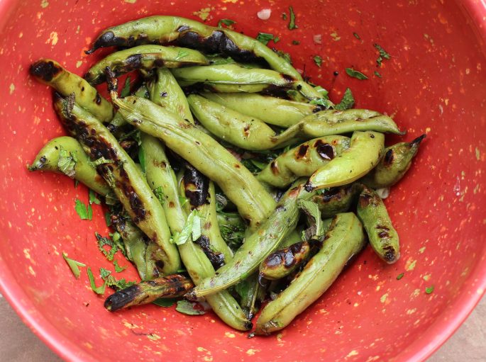 That’s it. I finished it with a little squeeze of lemon last minute. Grilled favas are great hot or room temperature and leftovers are just as good as when you made them.