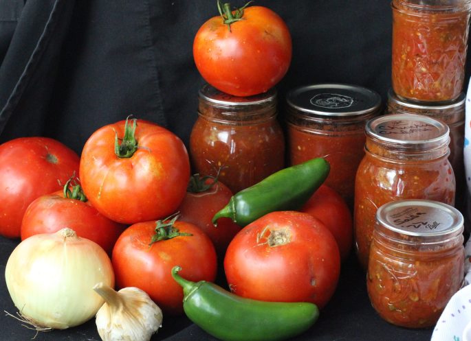 One of my favorite and quickest and easiest canning projects is to can salsa. You only need about 6 pounds of any kind of tomatoes and a few peppers and garlic or onions and a few herbs. There is loads of information and recipes on the internet on ‘how to’ can salsa. It might seem daunting, but really canning is a pretty easy, quick and satisfying project. You’ll be so happy to have your own salsa this winter.