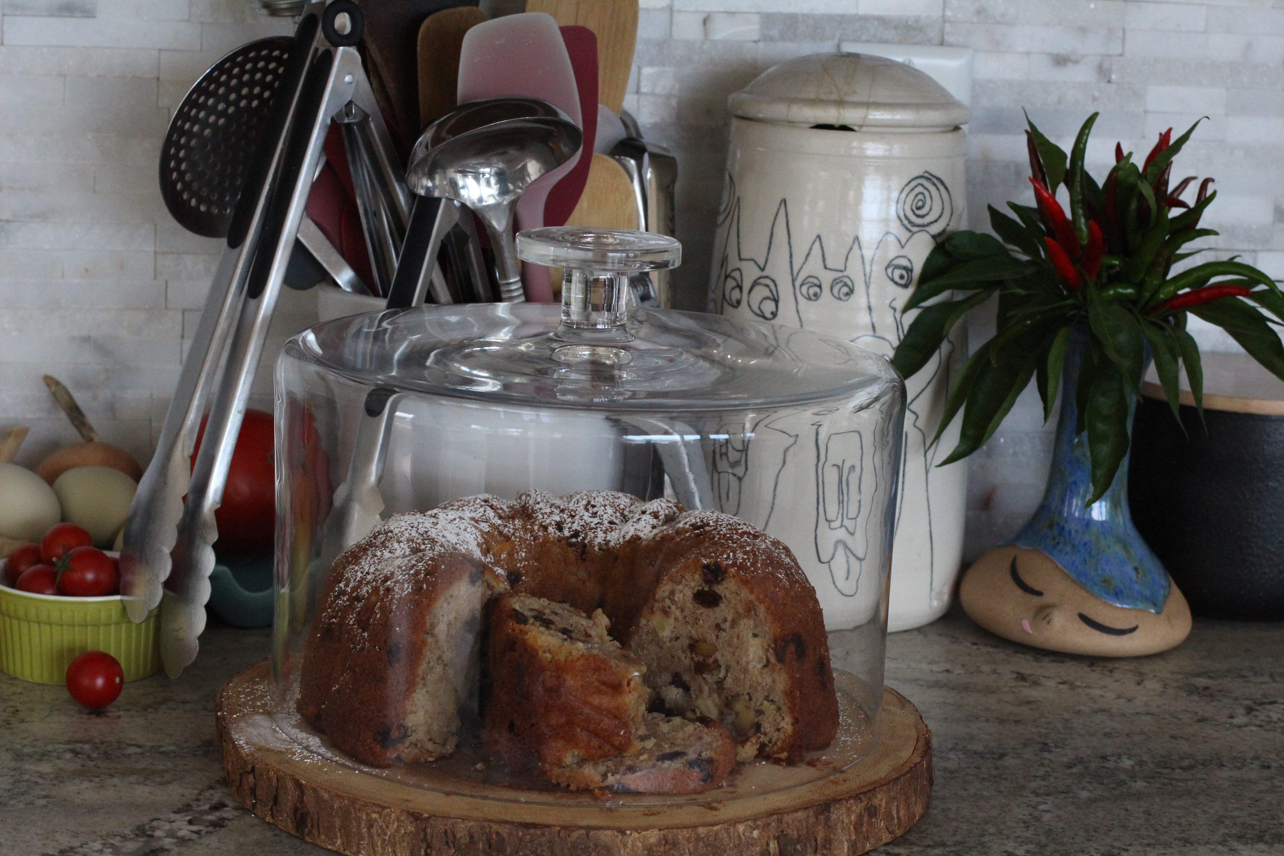 This cake is stuffed full of apples, nuts and raisins. It’s balanced with moist and chunky and chewy bites. It’s one of those cakes that that will travel well to work for snacking, or a potluck, or it will last a few days on the counter.