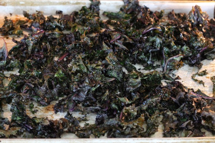 While the oven was hot I decided to roast some kale too. I don’t know if I had ever roasted kale before, but, why not? The tray was dirty and the oven was hot.