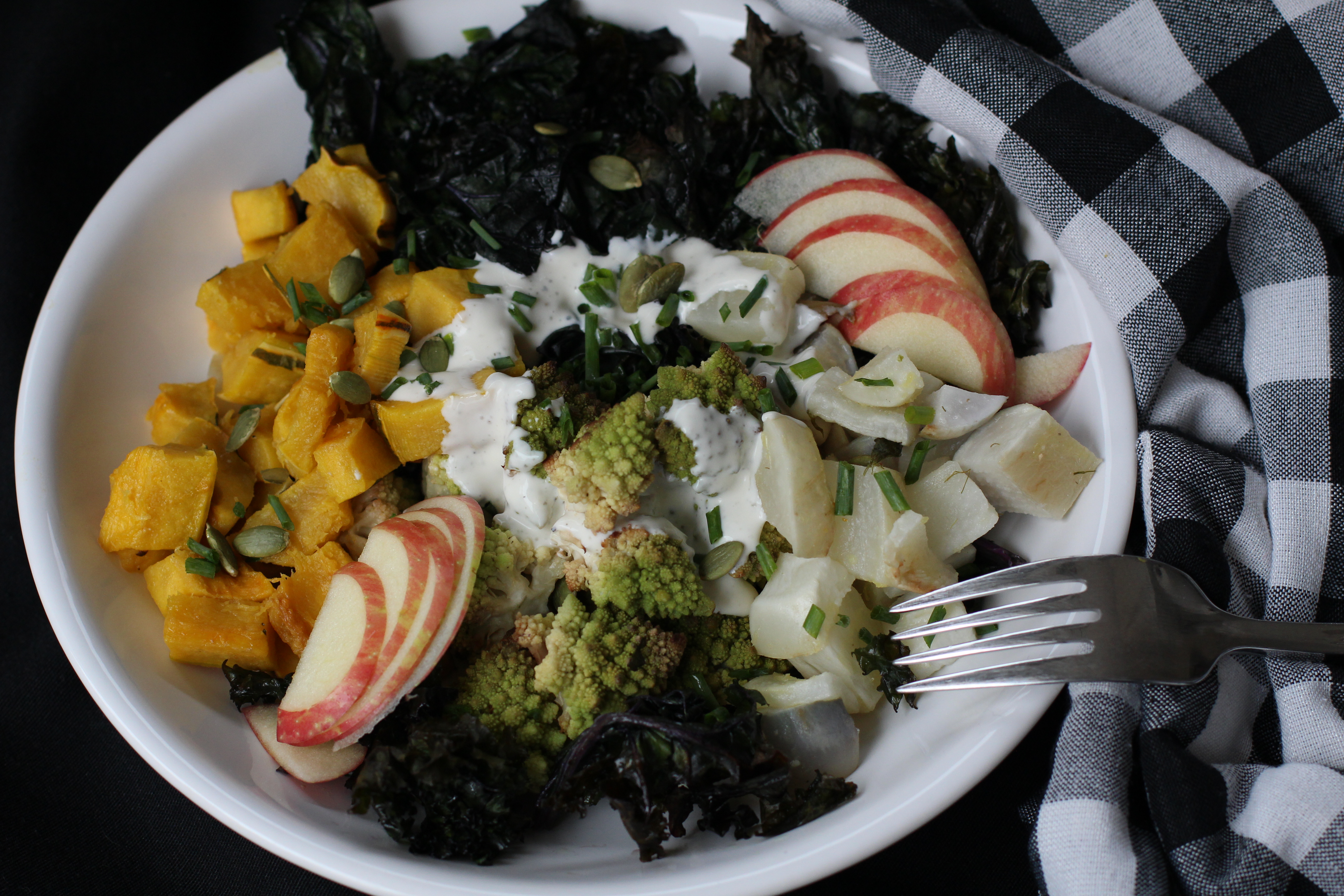 Sometimes I am cleaning out the refrigerator and need to use up droopy vegetables and other times I am trying to make room because I’m picking my CSA share soon. This week I had some turnips, fennel, delicata squash and Romanesco to use up before my pickup. So this is what I used this week.