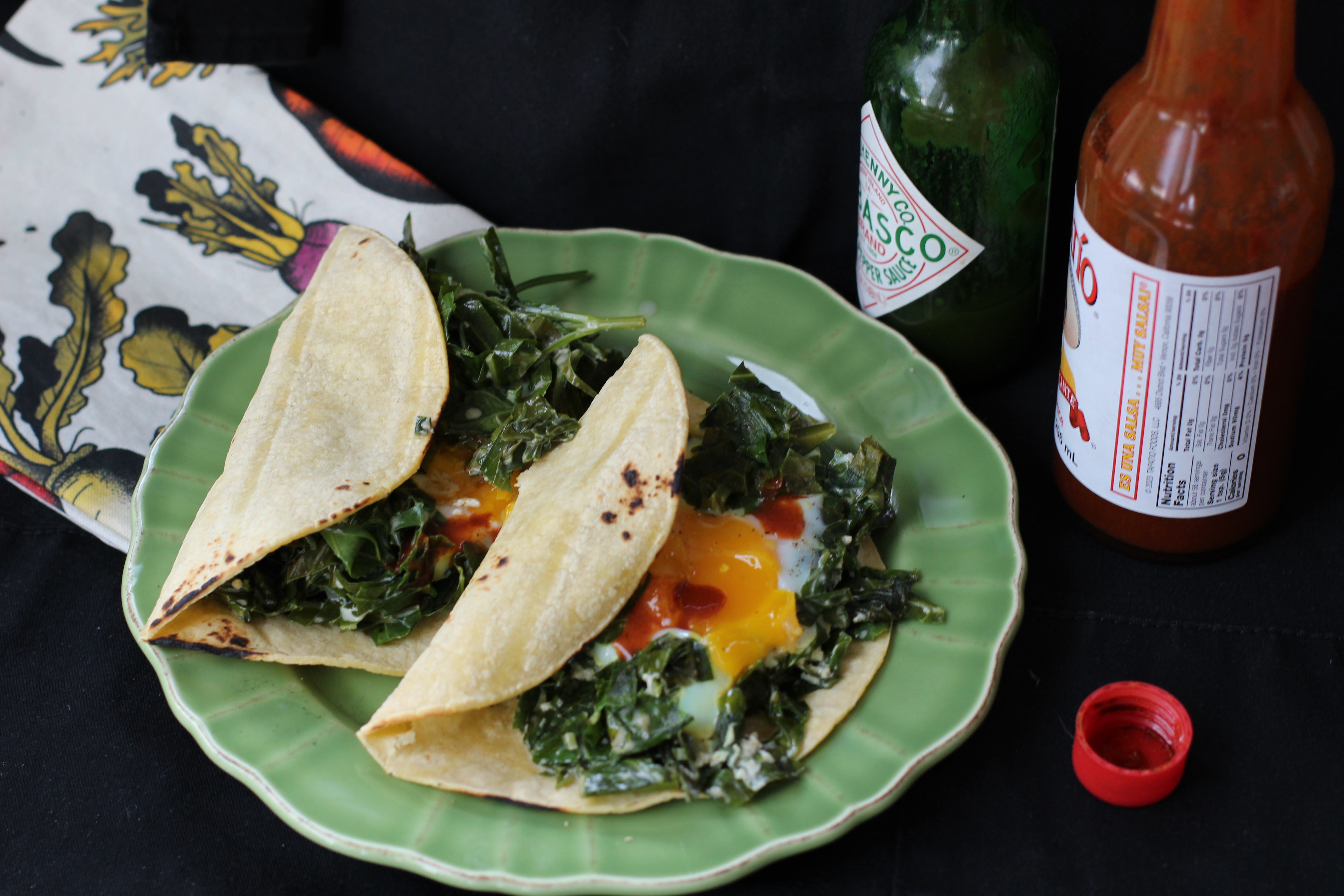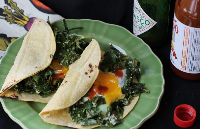 - 1 1/2 pounds mixed greens (I used 2 bunches of collards. ANY greens will work here), stems removed and roughly chopped.