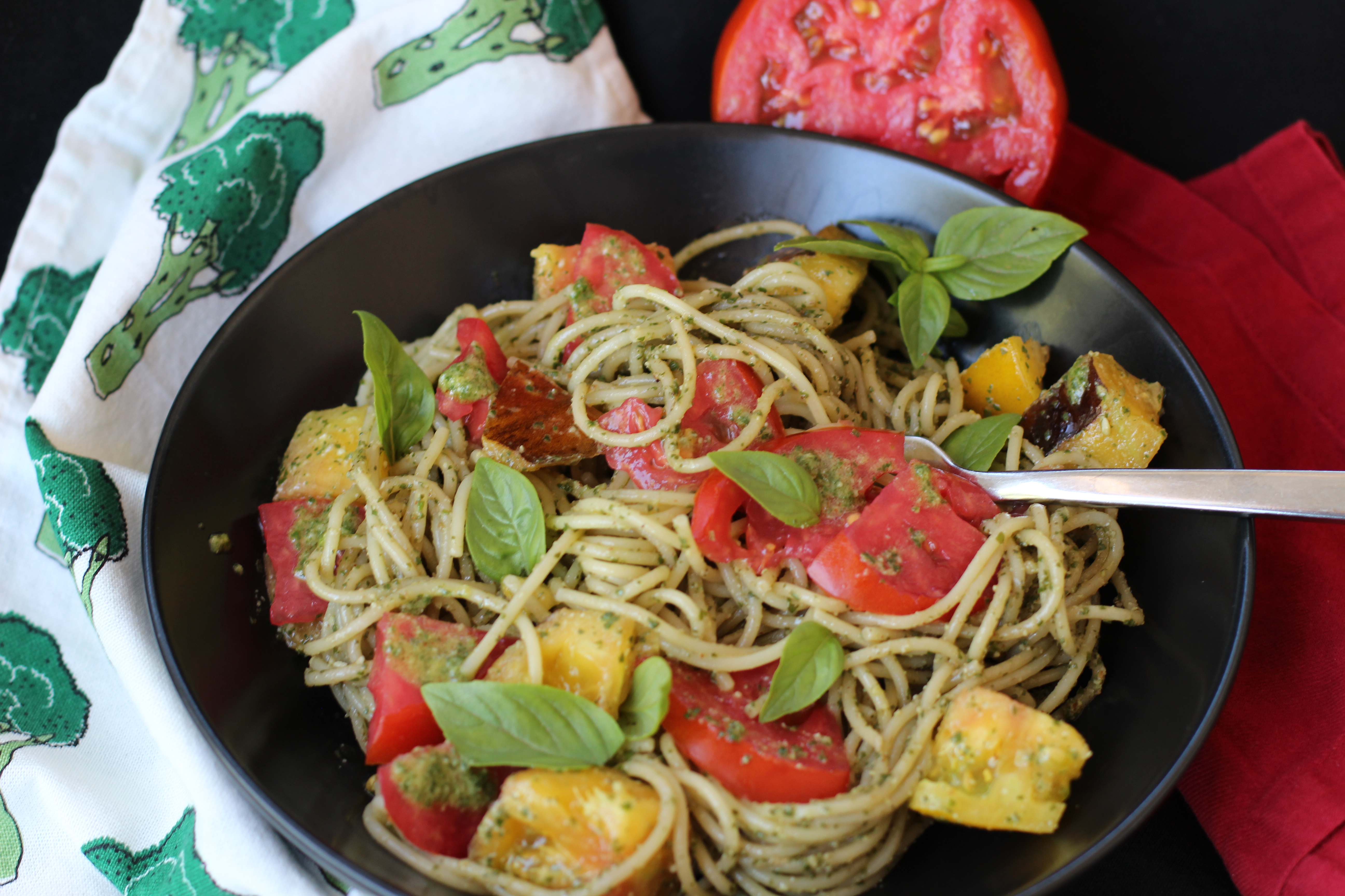 This made a little more than a cup which was plenty for a pound of pasta. If you have any leftover you can put it in a Ziplock bag or ice cube tray and freeze it for winter or add it to any salad, roasted or grilled vegetables or any grain dish. Pesto makes everything better.