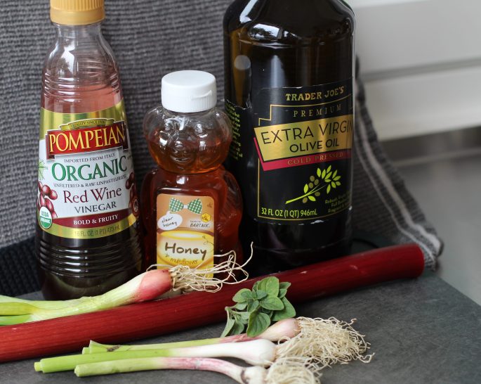 Here is a simple salad dressing using rhubarb. It is tart and sweet thanks to the honey and bright and clingy so it is suitable for heavy greens like kale or sturdy lettuces.