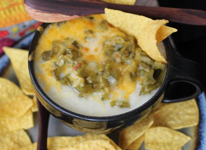 You can add roasted vegetables like leeks and make cauliflower leek soup or serve it with grilled cheese ‘croutons’ or leftover rotisserie chicken for a hearty meal. I chopped up some roasted green chilies and added cheese for a really delicious souper (haha) easy meal.