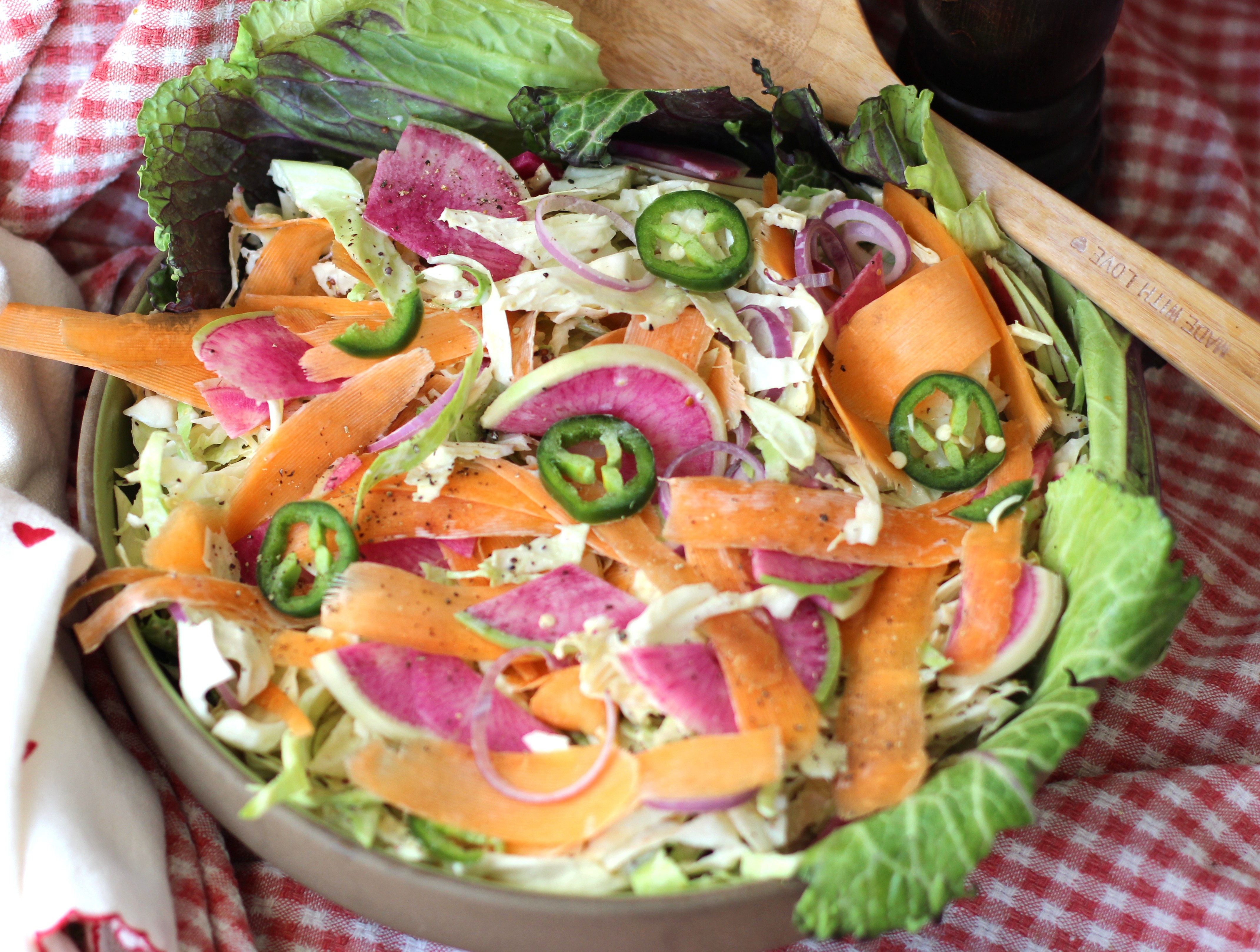 - optional any other vegetables you want to add like radishes, carrots, jalapenos, onions, turnips. Oh! Nuts and fruit like apples and dried fruit are really good too!