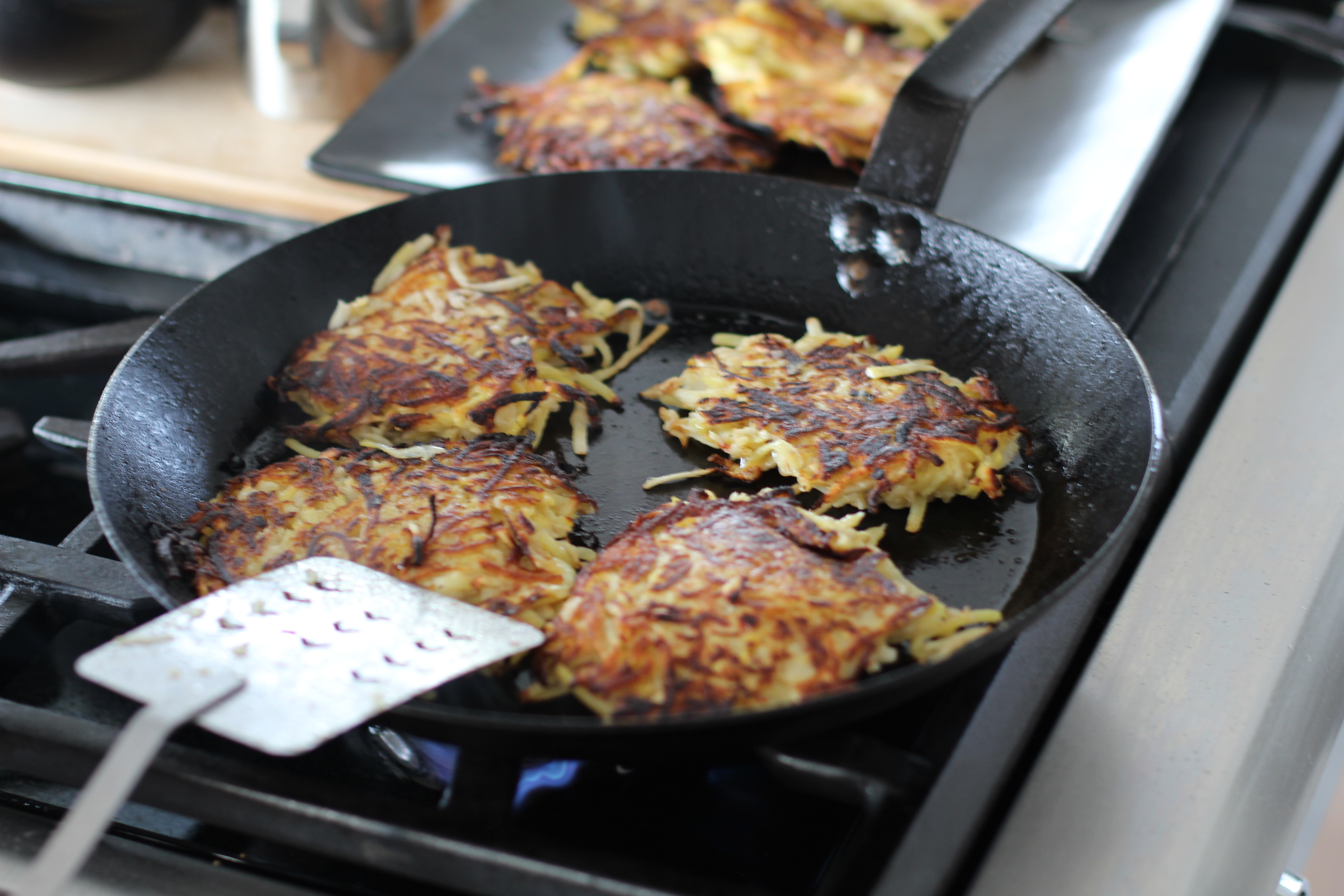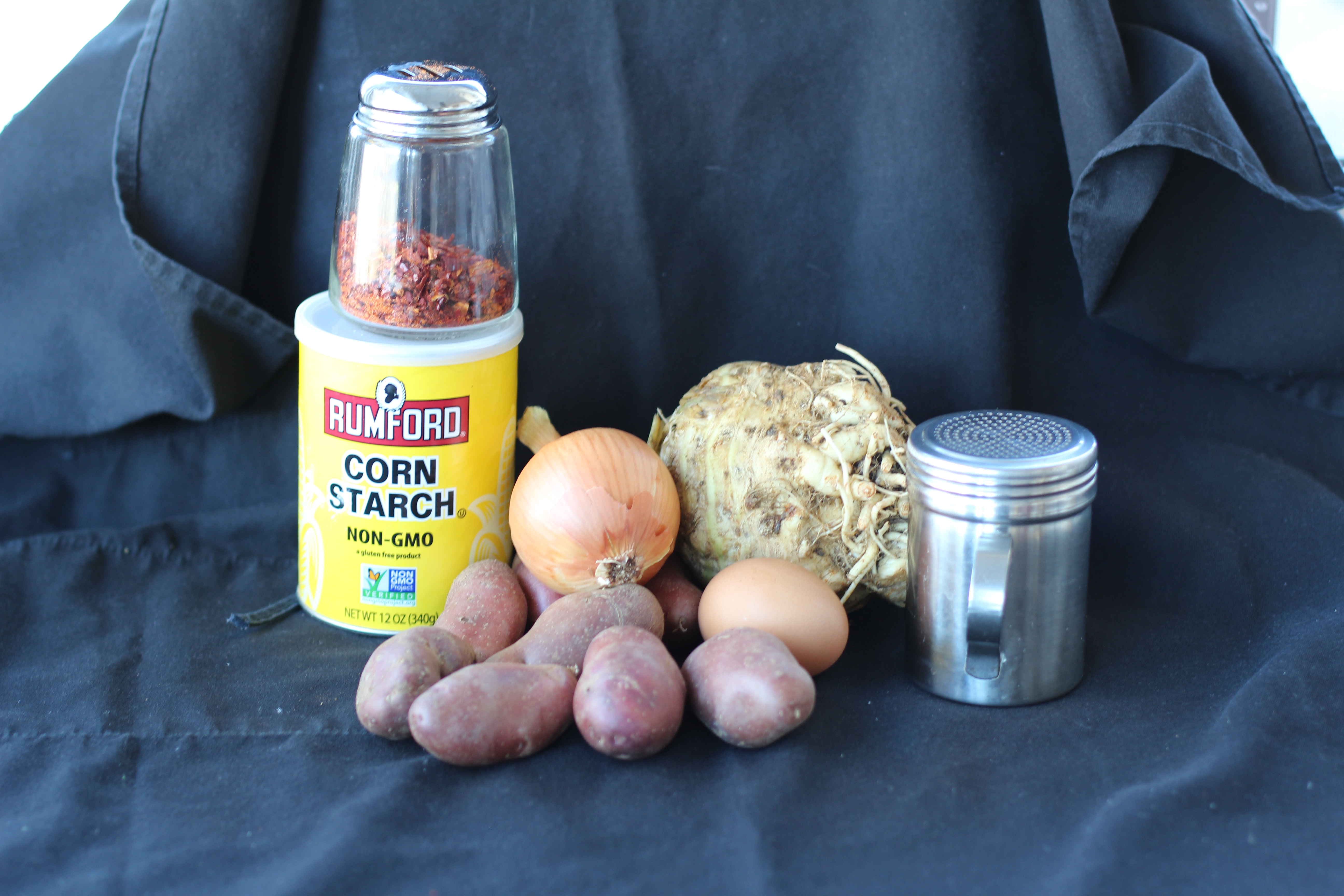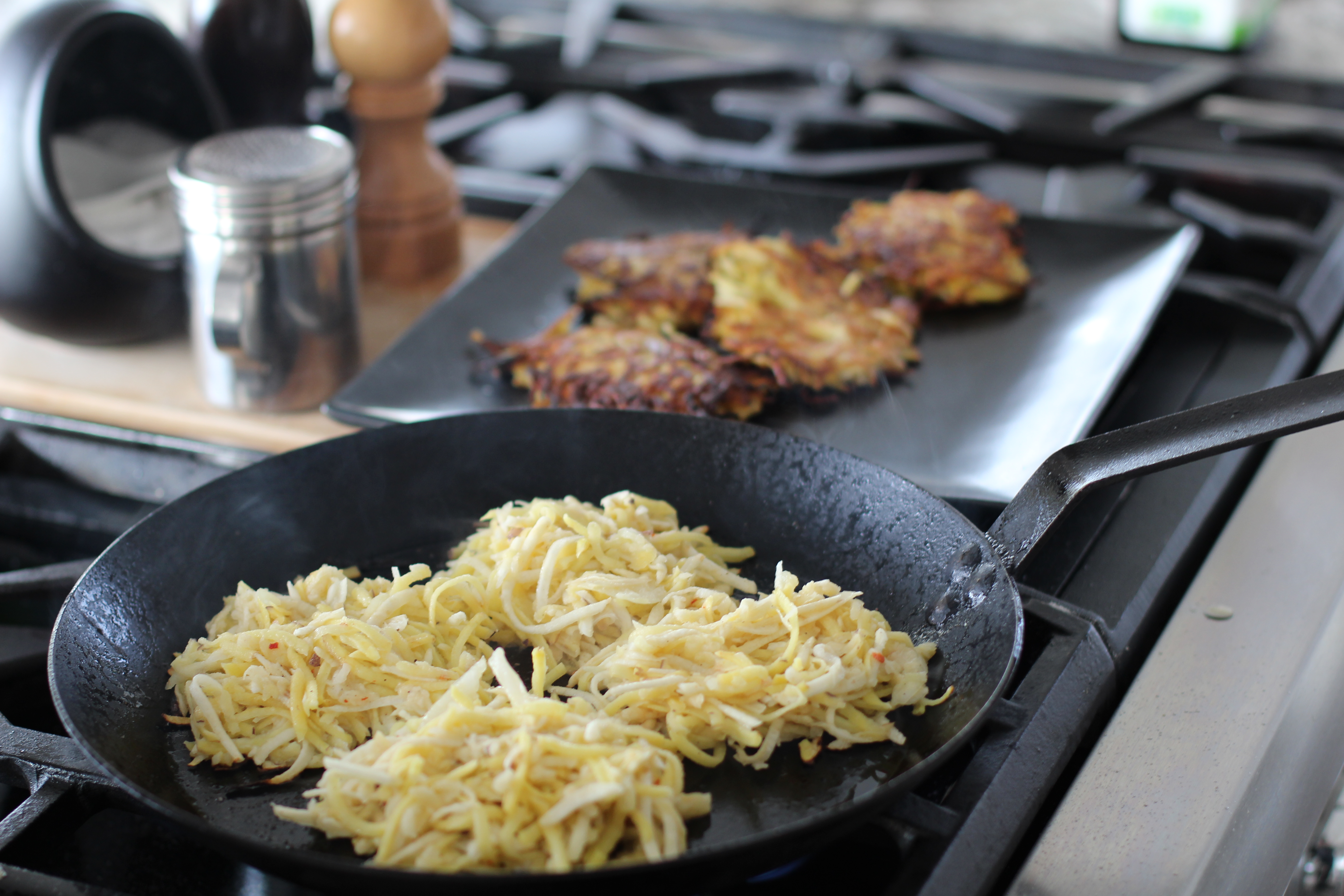 That’s because I pretty much make them how I make latkes but I prefer to mix and match whatever root vegetables I have. Today I had some potatoes and celeriac. Kohlrabi or rutabagas make great hashbrowns too. Just sub what you have and what you like.