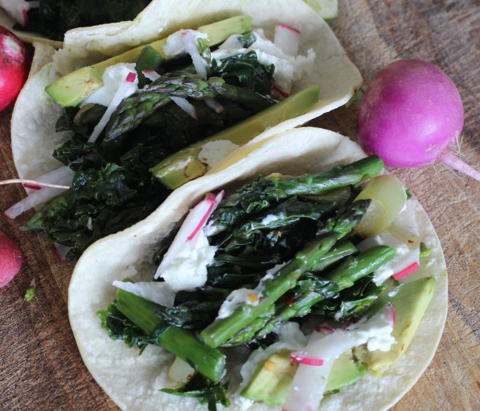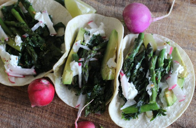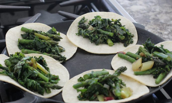 Season with salt and pepper to taste. Fill each taco with a tong full of the greens, top with cheese and or salsa.