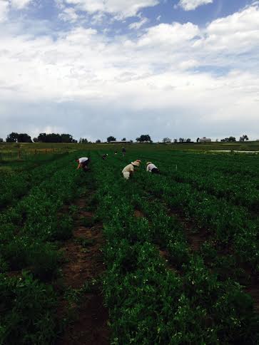 Being able to differentiate between pods that have reached their peak and those who need to remain on the plant to fatten more is probably one of the more difficult tasks. Pick them too soon when they are thin and they won’t reach the potential of their full sweetness- wait too long and their outer pod turns an unappetizing yellow and slightly translucent with the pod sometimes splitting to reveal the wrinkly individual peas inside. When over ripe their taste is close to bitter and their texture, woody. Quality control of the utmost importance. The pod on the farthest right is the sweetest sugar snap pea you could possibly taste and what were were looking to harvest.