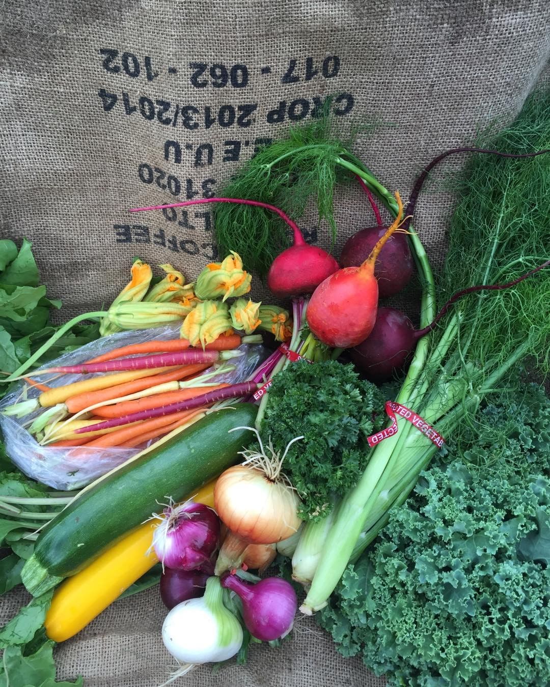 See a list of what was in a past season’s Veggie Shares. You can also check out @redwagonfarmco on Instagram to see what CSA members got every week last year.